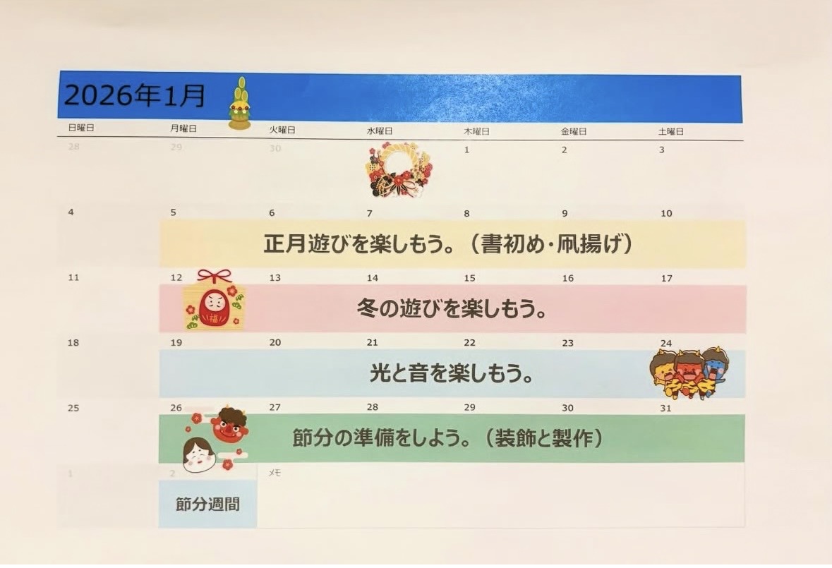 ほしかけ玄関の後ろの壁に、月の予定を掲示していましたが、お気づきになられていますでしょうか?