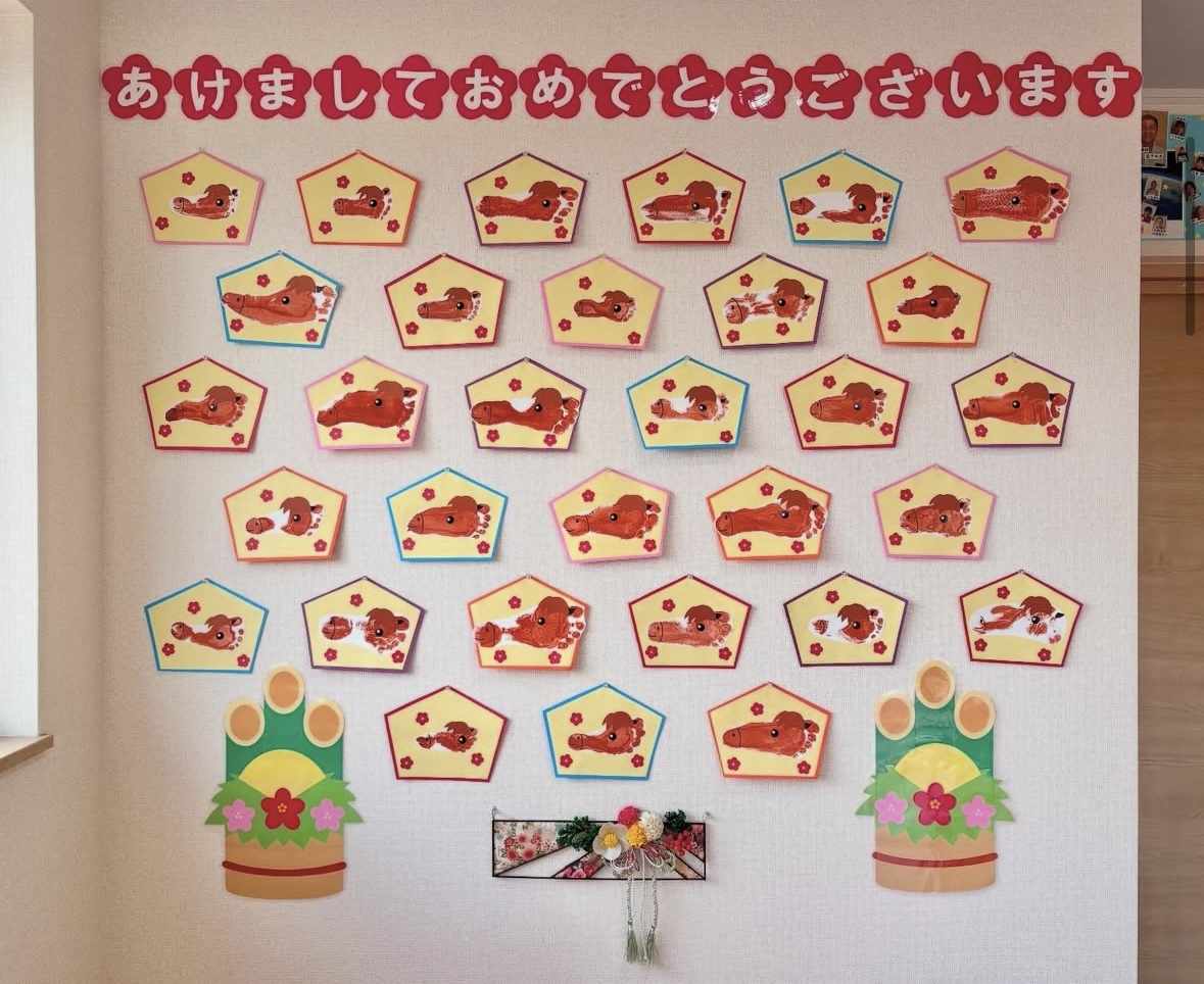 窓は鏡餅の絵が描いてあり、みんなで季節の写真も撮りました♬