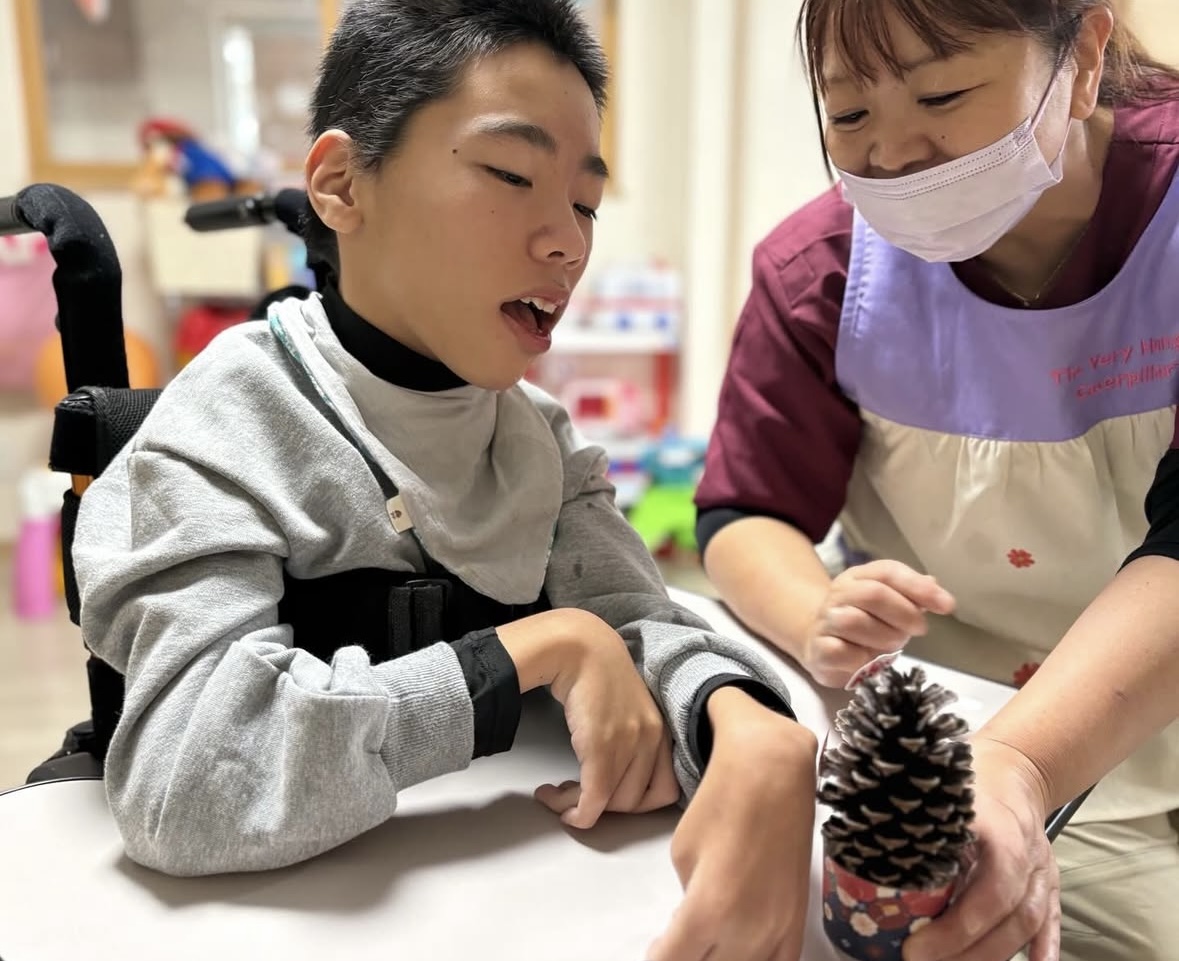 お正月遊びということで、テラスでみんなで凧揚げを行いました!