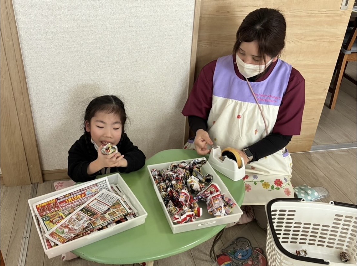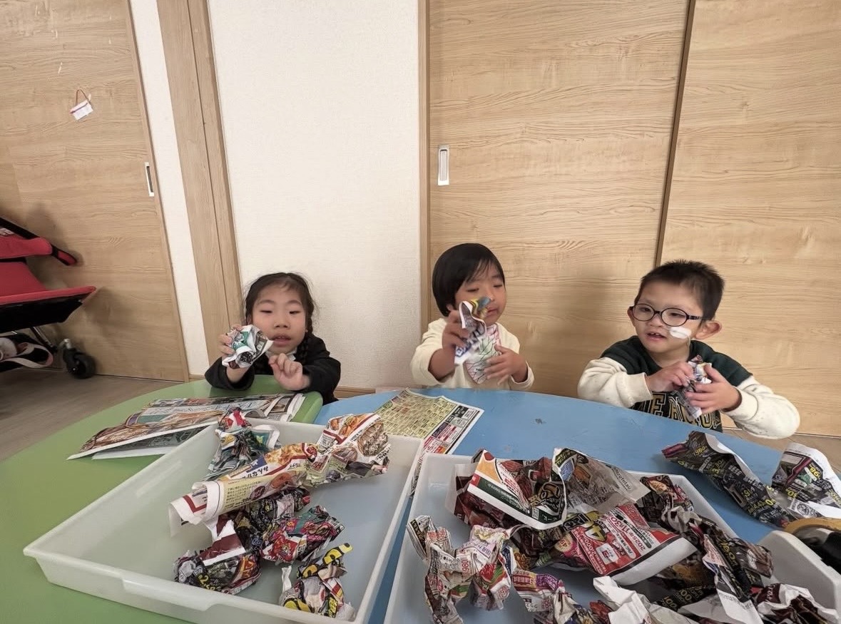 今週は節分の準備ということで、節分の豆まきで使用する豆をこども達と作っています。