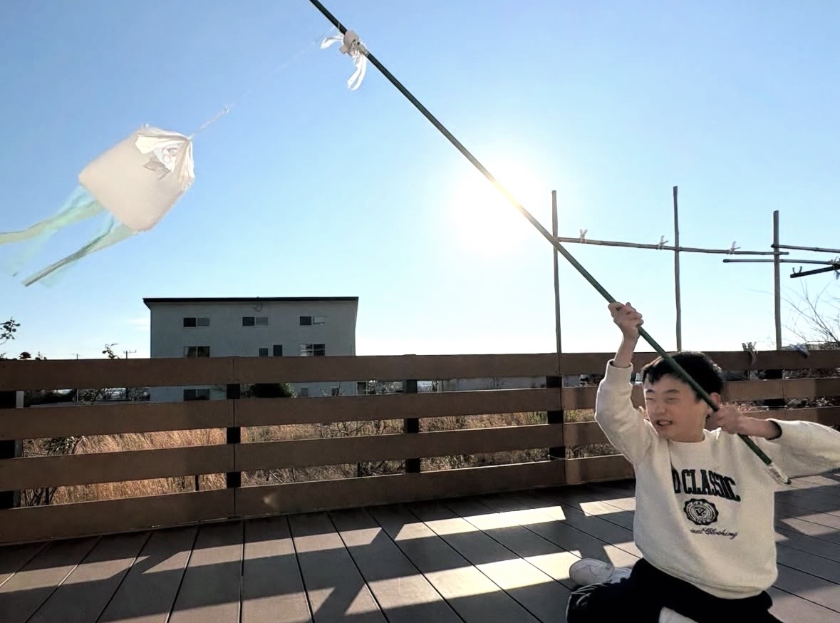最初は鬼の的当てを行って楽しんでいましたが、鬼の登場にびっくりして