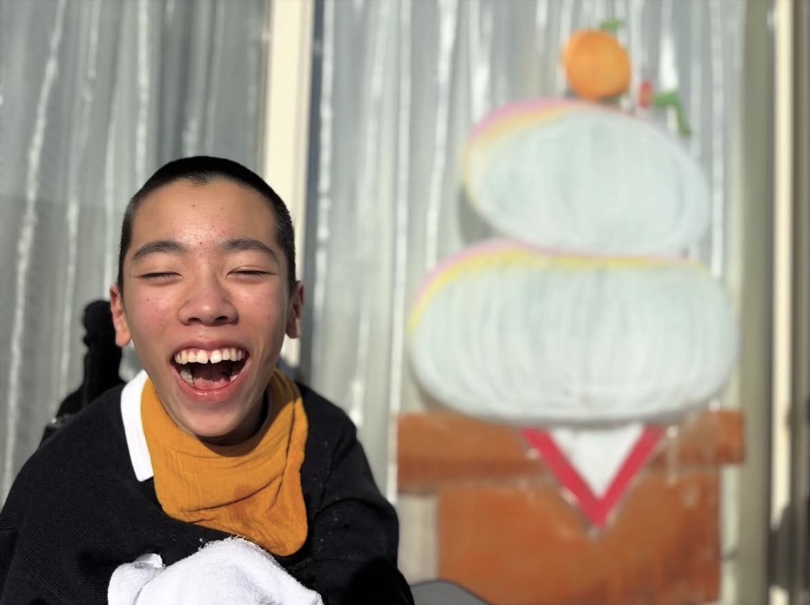「おにはそと、ふくはうち」と元気にみんなで豆まきを行いました。