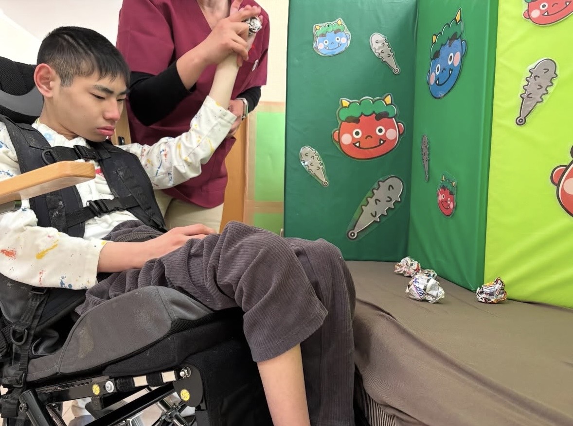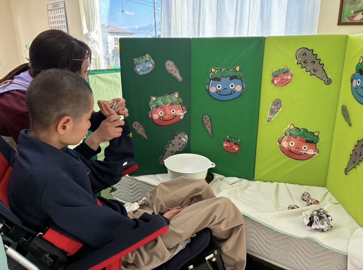 今週は豆まき週間という事で、みんなで鬼の的当てをして、